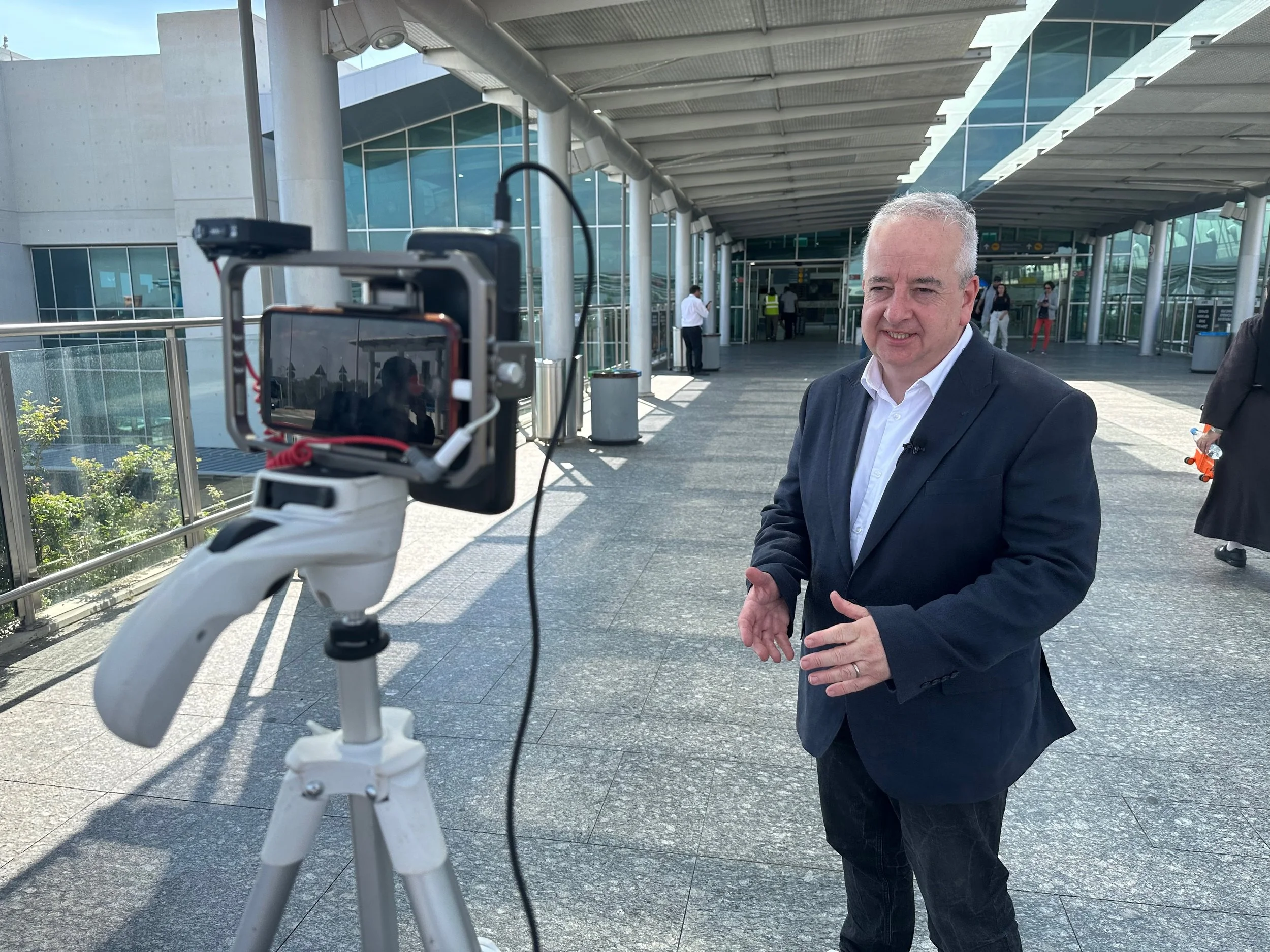 This was a live broadcast on BBC Breakfast News. The camera crew was stuck on the motorway so Nick Garnett had to get on the air on his own using a five year old, bottom of the range, iPhone SE and two cheap lights. Yes, you have to know what to do with it but *any camera can get on air.